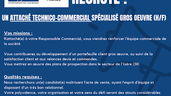 Nous recherchons un Attaché technico-commercial spécialisé gros œuvre (H/F) pour rejoindre nos équipes en Isère !