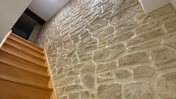Découvrez cette superbe réalisation en enduit sculpté imitation pierre, effectuée avec l’enduit Super Brut de PRB, teinte Athènes 692