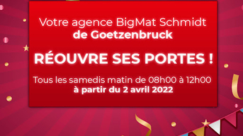 👉 Votre agence BigMat Schmidt de 📍 𝗚𝗼𝗲𝘁𝘇𝗲𝗻𝗯𝗿𝘂𝗰𝗸 ouvre à nouveau ses portes le samedi matin !