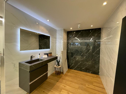 Focus sur une réalisation de douche effet marbre, au rendu élégant et contemporain ✨